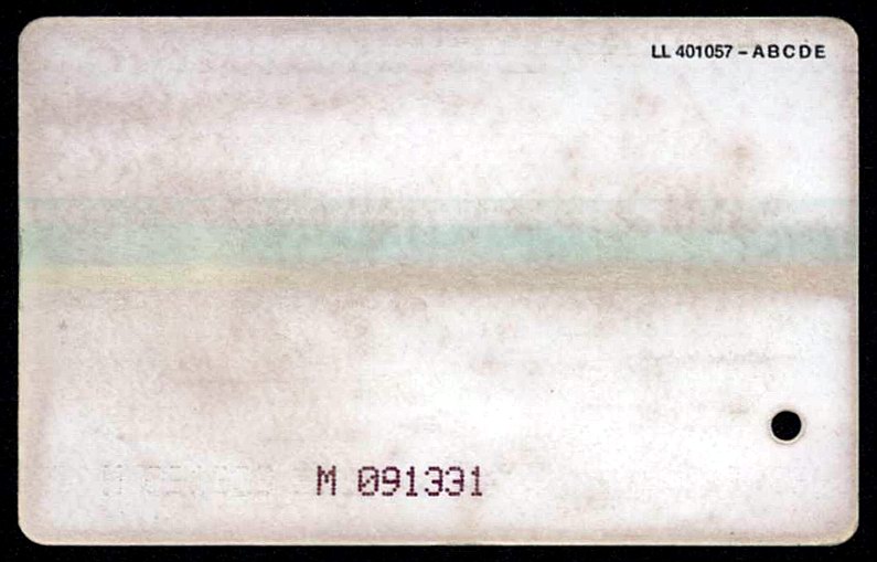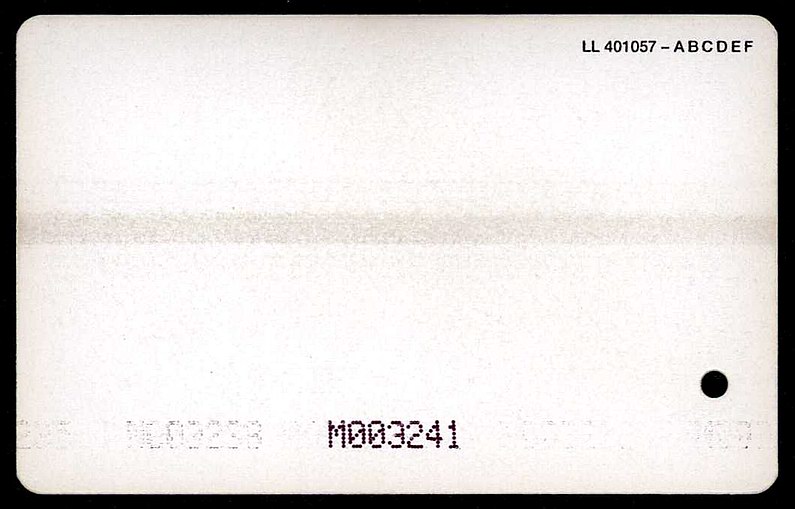M402 card. Has LL 401057 printed on rear as well as individual card number prefixed "M".