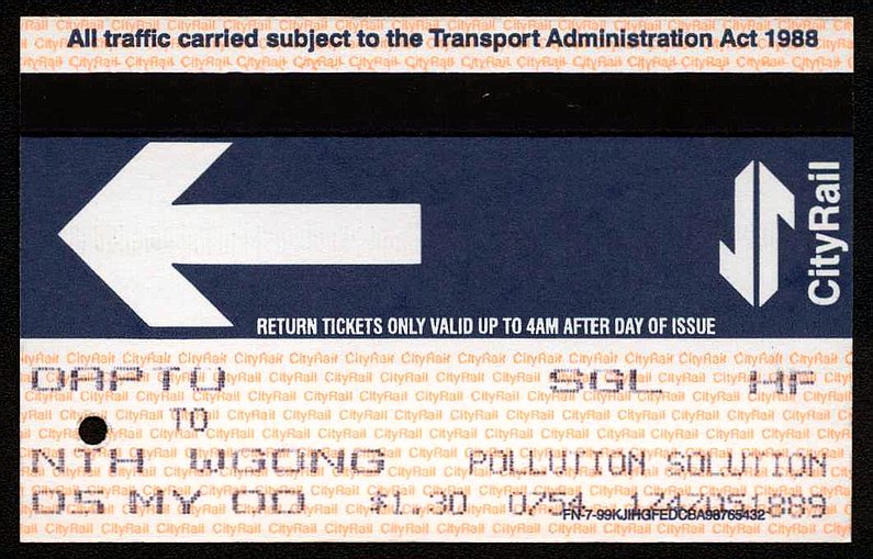 basically moving rhe destination station name and slogan up by one line. This created room to place the now mandatory GST wording where the slogan had been previously printed. However, moving the slogan up by one line restricted the number of characters available to be used for the slogan from 18 to 14. Even worse, TVM's were only able to print a slogan 13 characters long which led to the last letter being omitted from those tickets printed by TVM's. This oversight/error was not rectified for more than 5 years. Accordingly, tickets issued from both BOM/TOM's (left) and TVM's (right) will now be illustrated to show the truncated slogans. |
